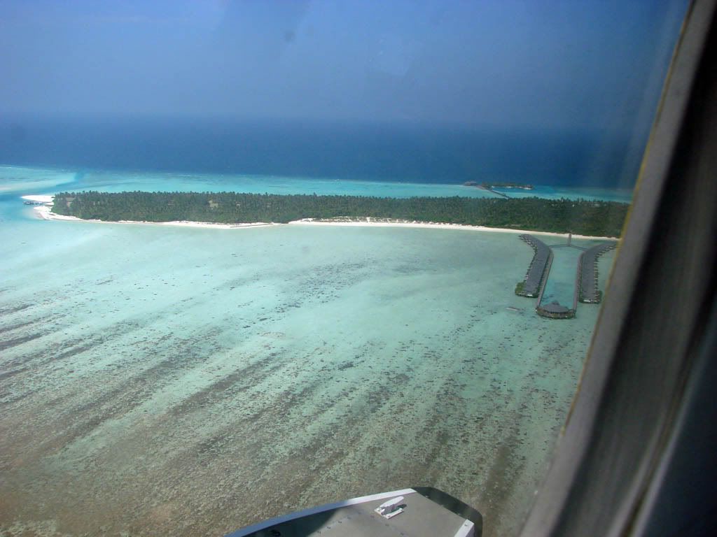 Подлетаем на гидроплане к "нашему" острову.